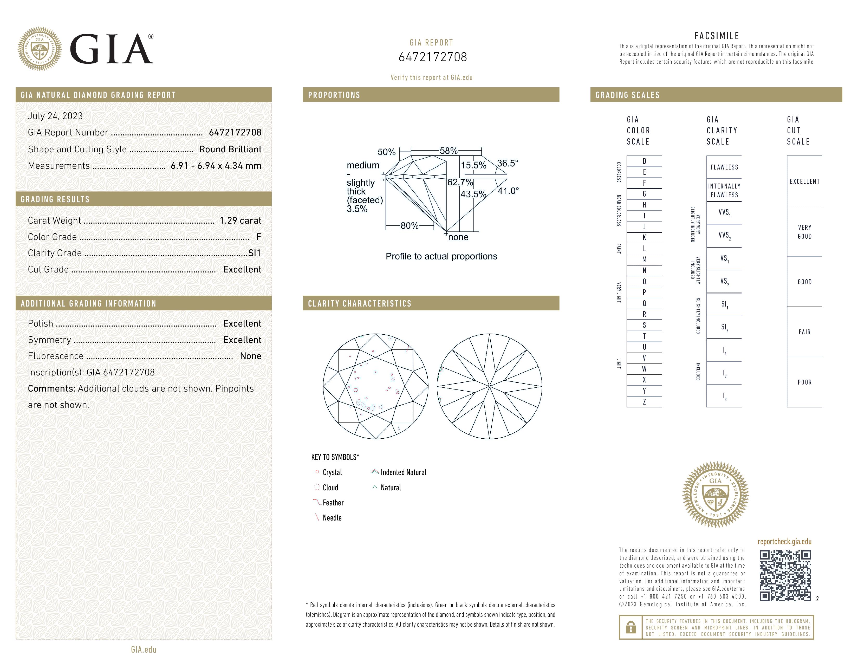 GIA 1.29 Carat F-SI1 Ideal Cut Round Diamond