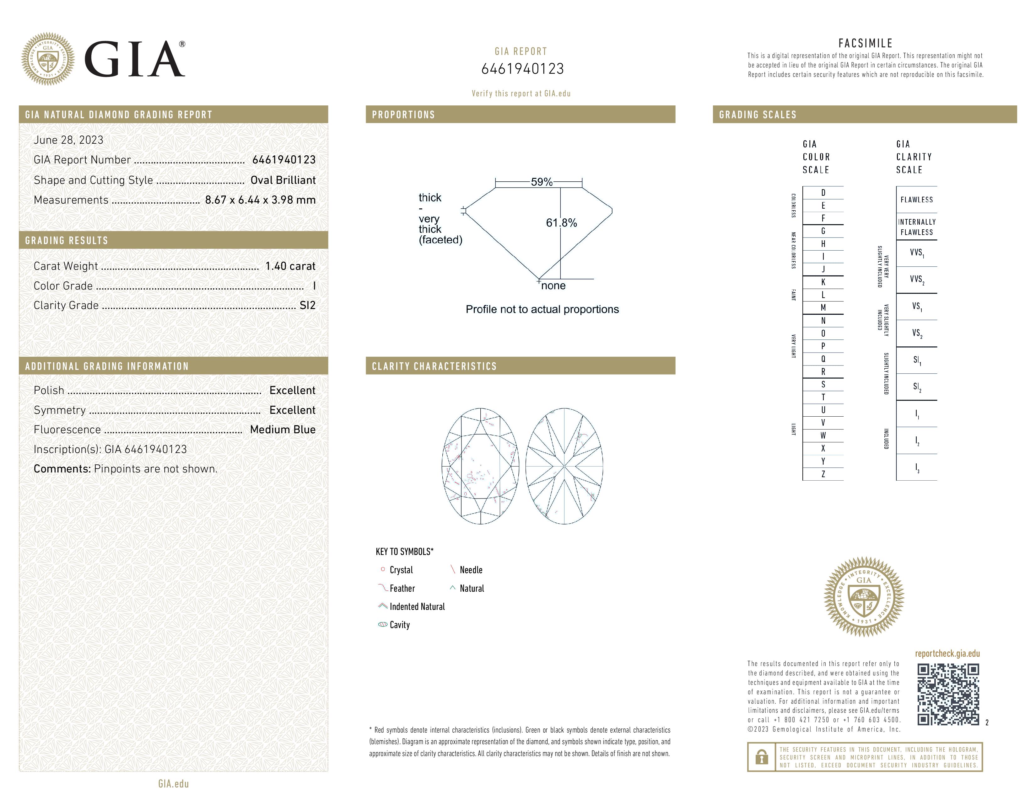 GIA 1.40 Carat I-SI2 Very Good Cut Oval Diamond