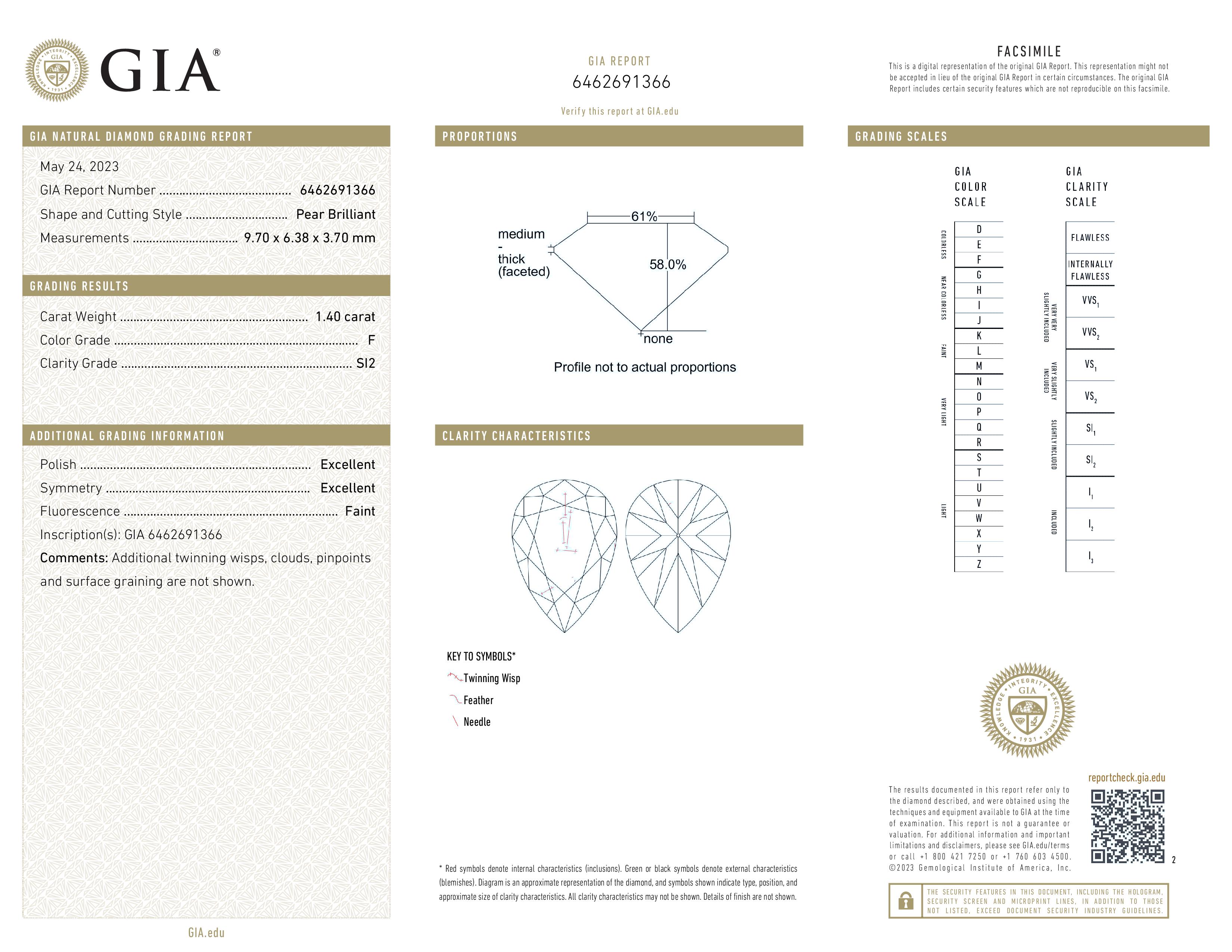 GIA 1.40 Carat F-SI2 Very Good Cut Pear Diamond
