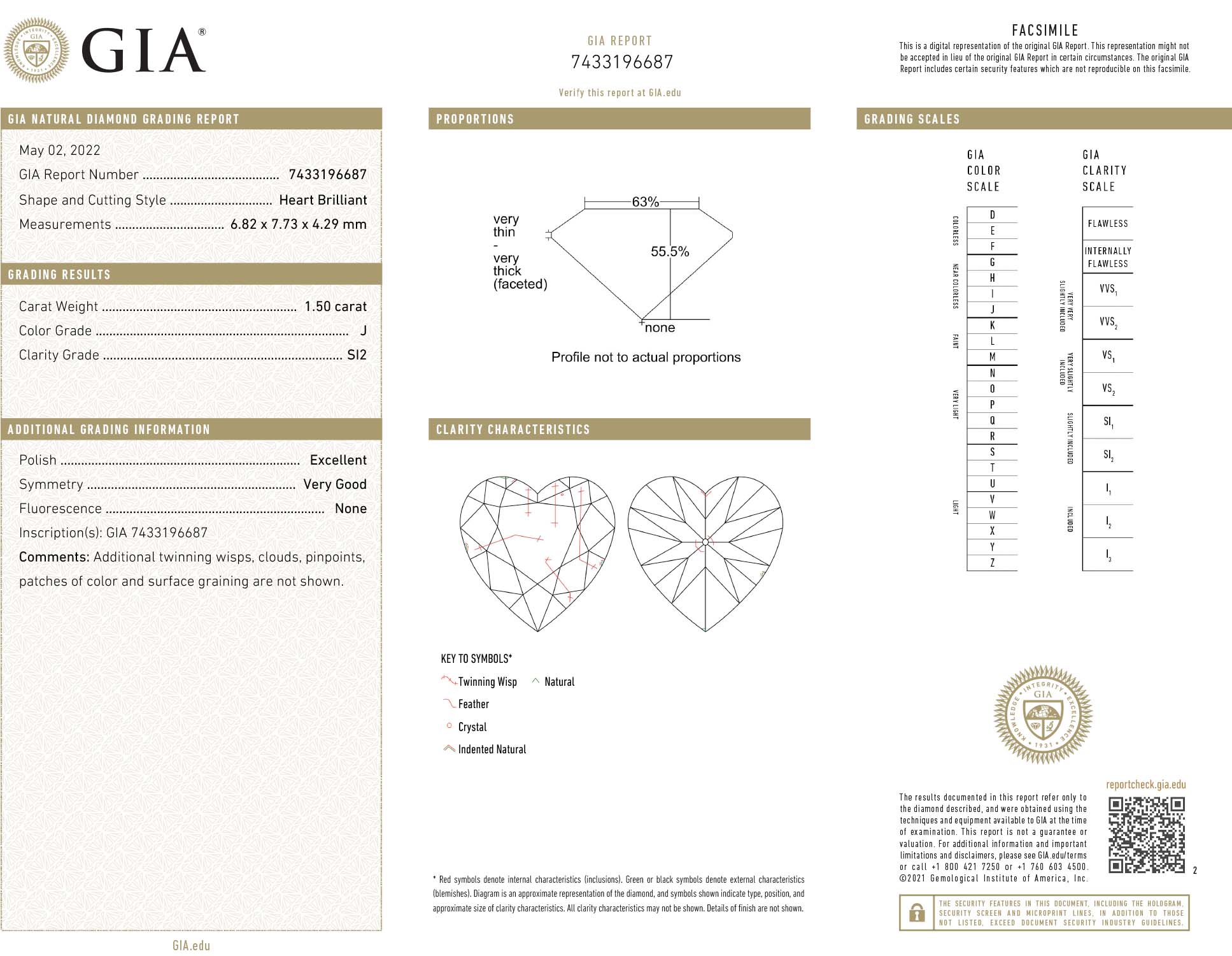 GIA 1.50 Carat J-SI2 Very Good Cut Heart Diamond