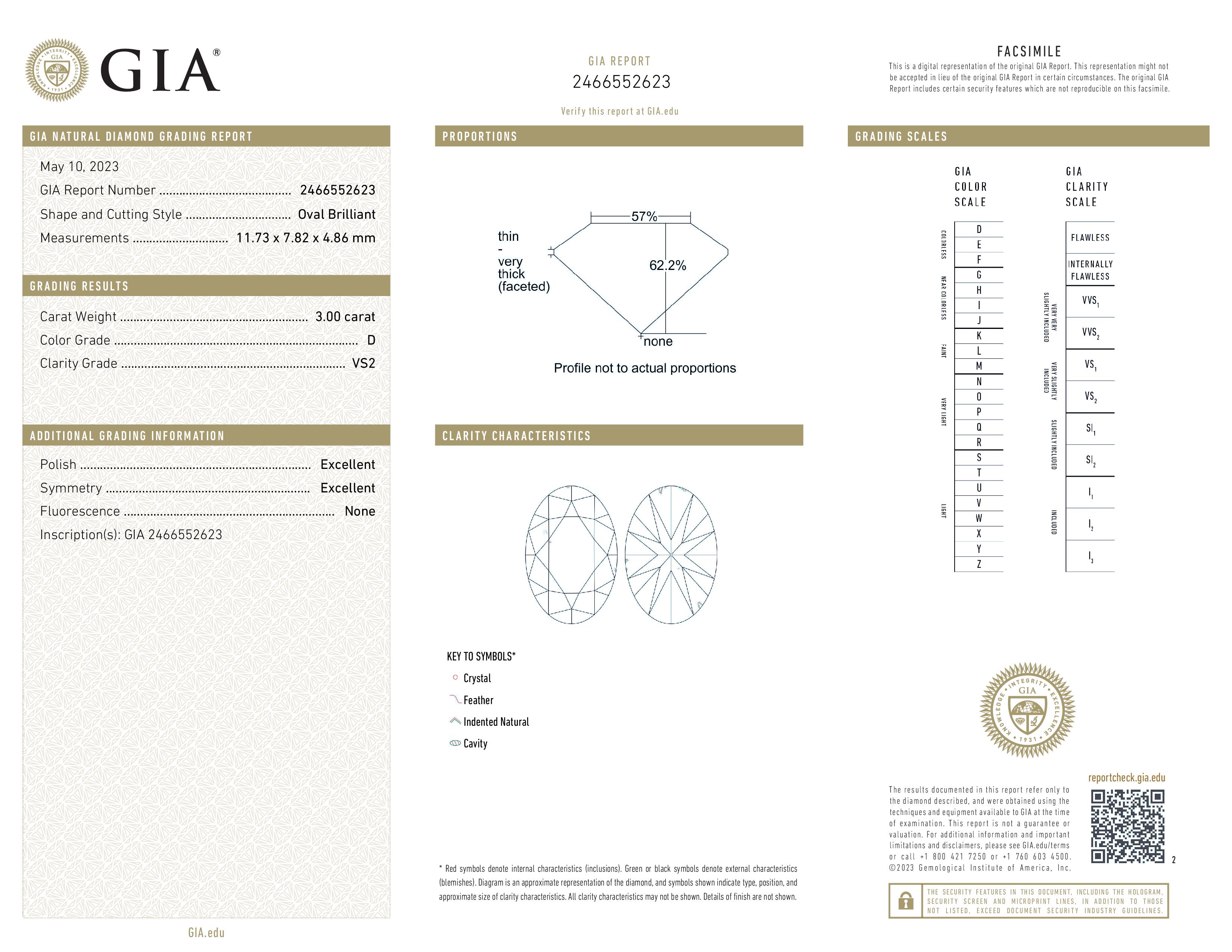 GIA 3.00 Carat D-VS2 Very Good Cut Oval Diamond