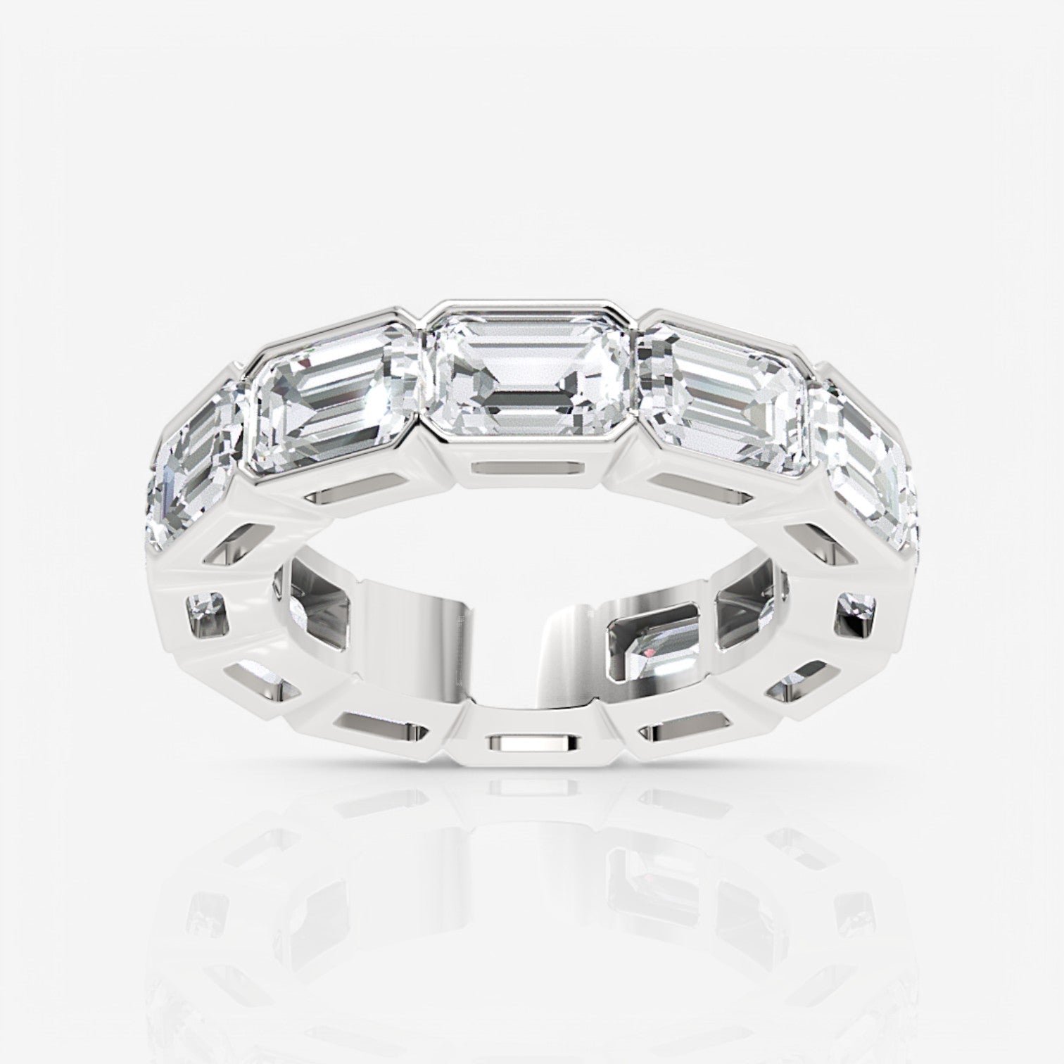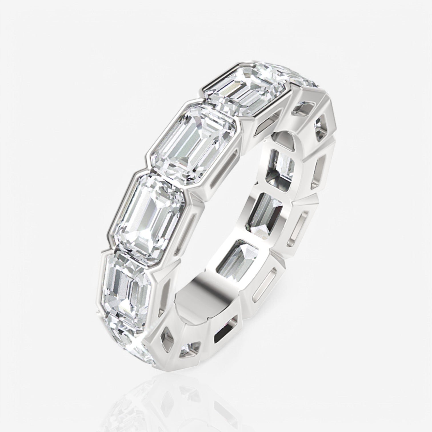 East-West Half Bezel Emerald Lab-Grown Diamond Eternity Band