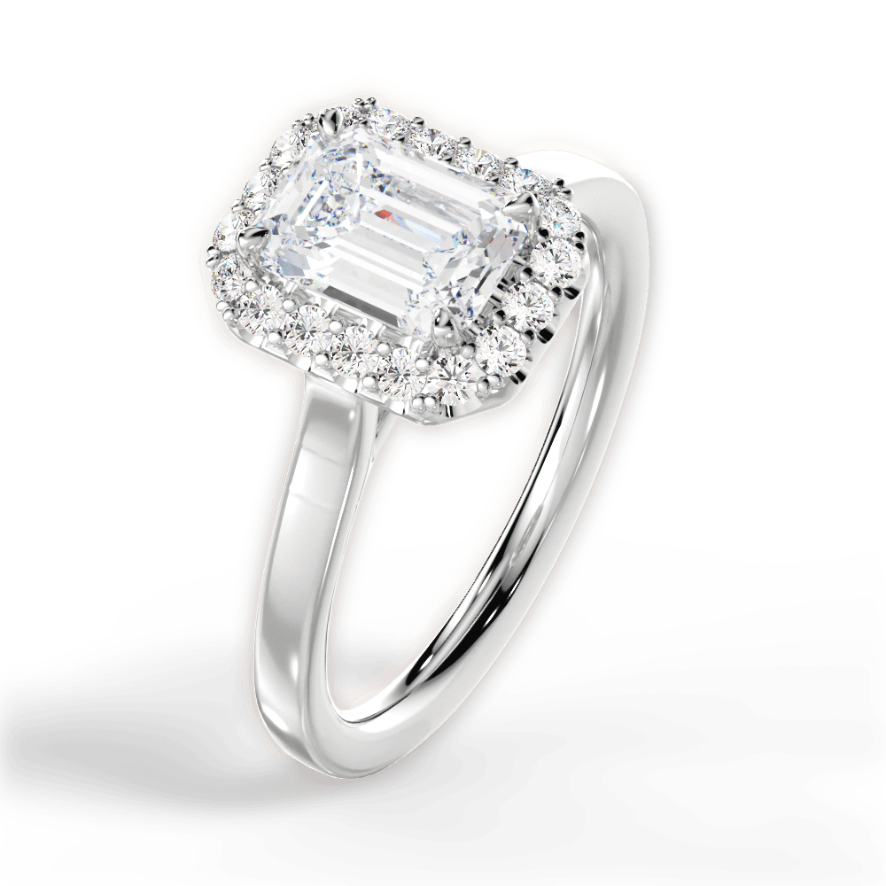 The Ivy Emerald Cut Platinum Plain Band French-Set Halo Engagement Ring