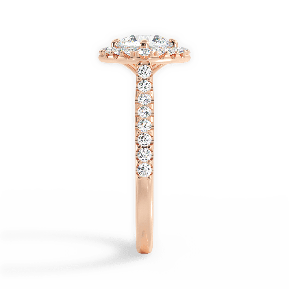 The Wynter Round Cut 18kt Rose Gold Kite-Set Halo Diamond Engagement Ring