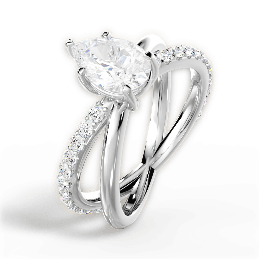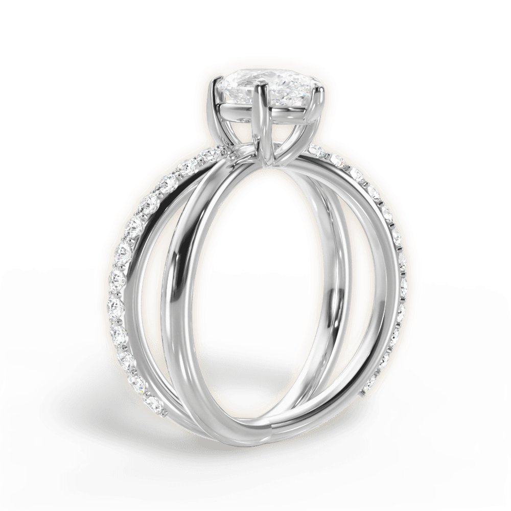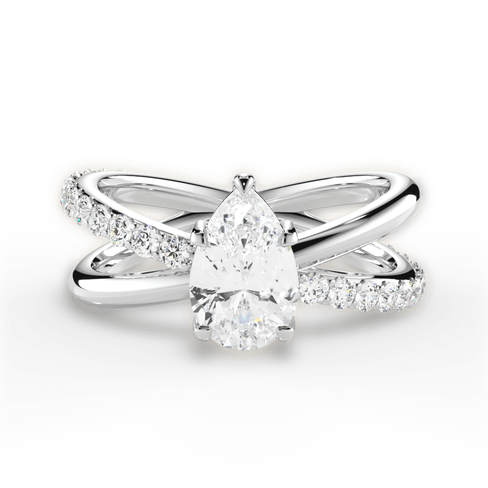 The Odette Pear Cut Platinum Modern Open Band Diamond Engagement Ring