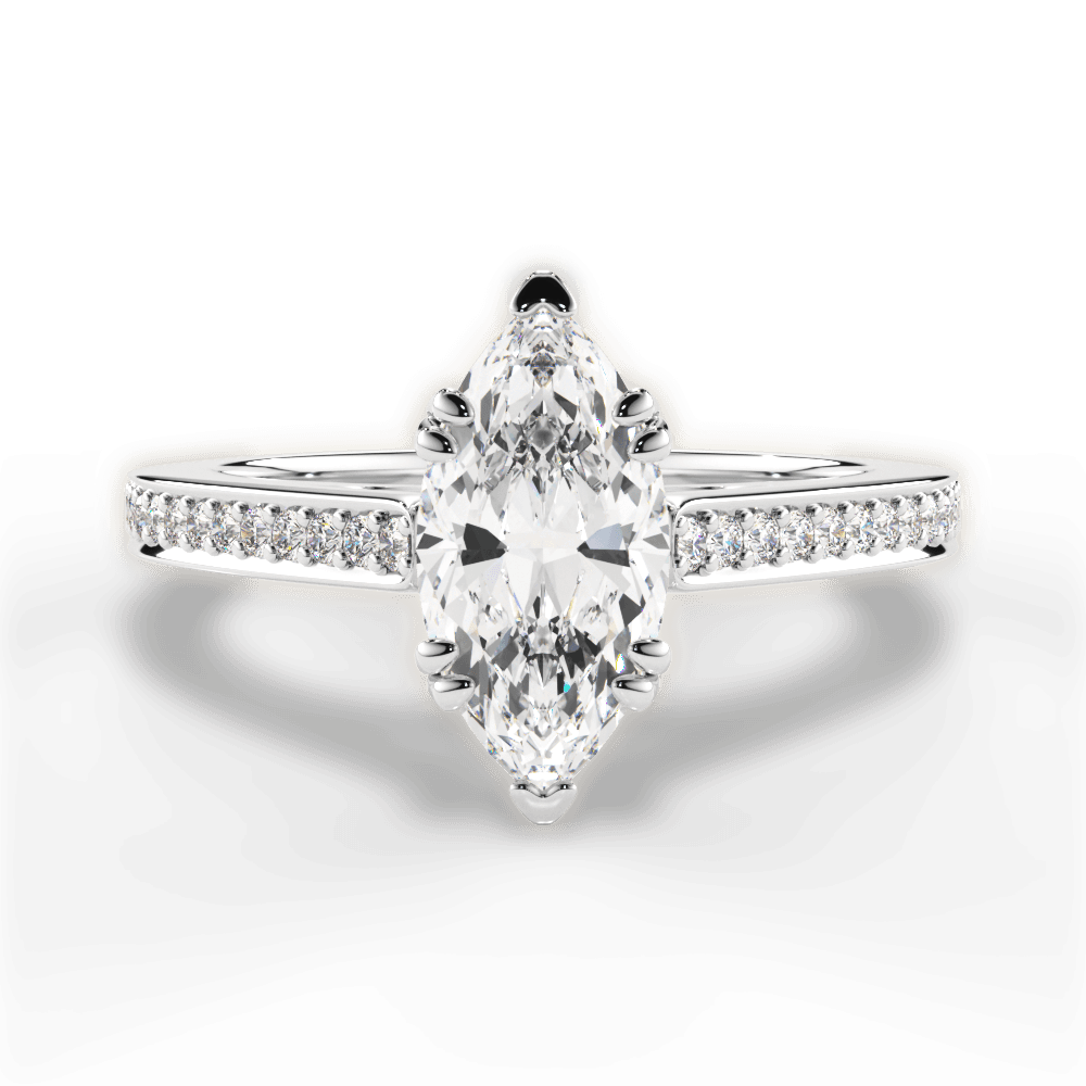 The Zahra Marquise Cut 14kt White Gold Pavé Vaulted Diamond Engagement Ring