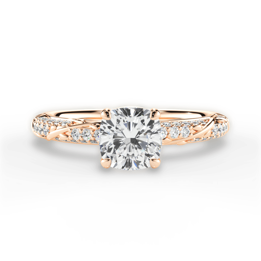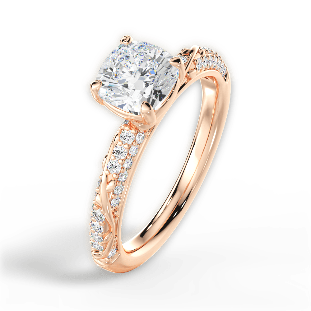 The Leah Cushion Cut 18kt Rose Gold Three Row Diamond Vine Engagement Ring