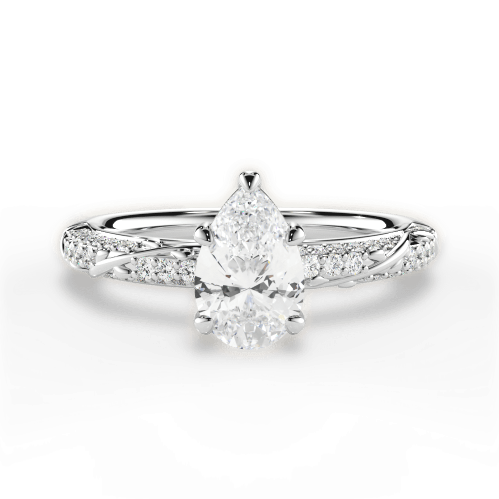 The Leah Pear Cut Platinum Three Row Diamond Vine Engagement Ring