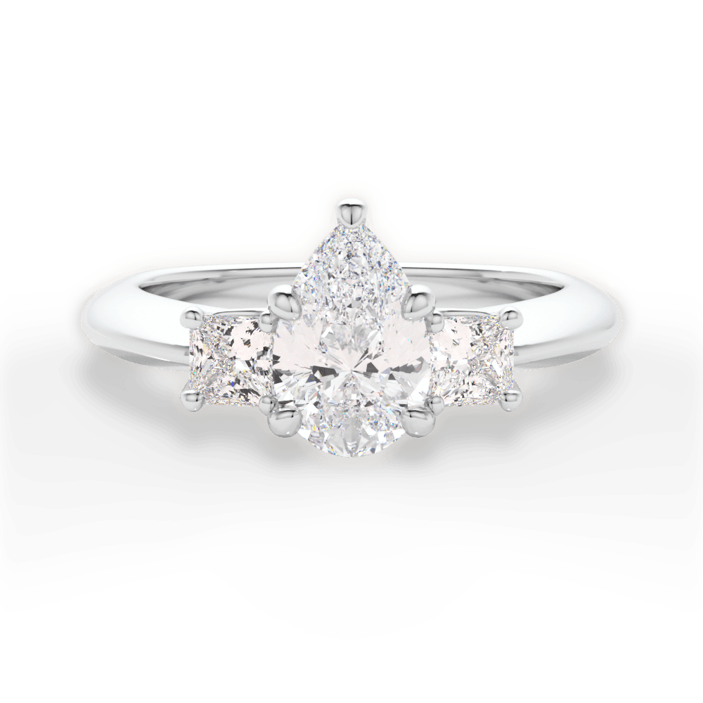 The Ellie Pear Cut Platinum Three-Stone Solitaire Engagement Ring