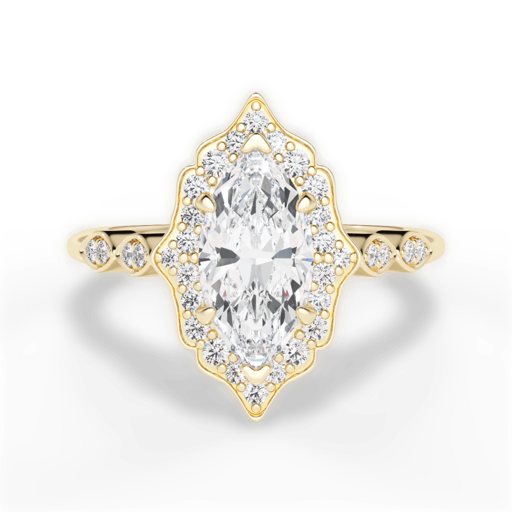 The Capri Marquise Cut 18kt Yellow Gold Vintage Floral Halo Diamond Engagement Ring